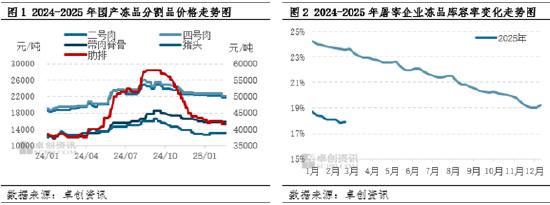 屠宰企业分割意向虽有提升,但从季节性来看入库意向不及往年平均水平。从图4看到,2-6月为屠宰企业集中入库阶段,2月份企业库容率将由-1.91%增至2.09%。当下入库的原料成本依旧偏高,且业内对2025年下半年至2026年上半年的行情并不持乐观态度,同时部分企业资金压力较大,整体来看屠宰企业入库依旧偏谨慎,入库总量亦偏低。