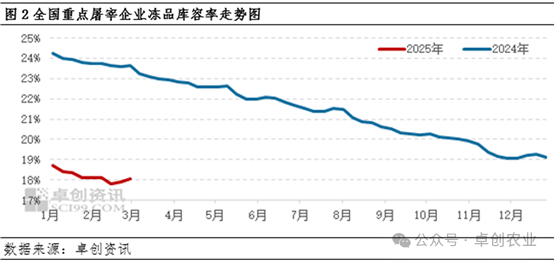 3月初有国储轮库,企业承接积极性较大,同时原料价格仍有下滑预期,屠企或有少量入库行为。预计3月冻品库容率或小幅上涨空间。