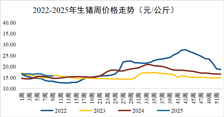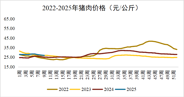 猪肉价格继续下跌:2025年2月第4周全国猪肉平均价格26.85元/公斤,环比下跌1.1%,同比上涨7.3%。天津、上海、辽宁等3个省份猪肉价格上涨,重庆、吉林、宁夏、广西、青海等27个省份猪肉价格下跌。华南地区价格较高,为28.91元/公斤;东北地区价格较低,为23.56元/公斤。