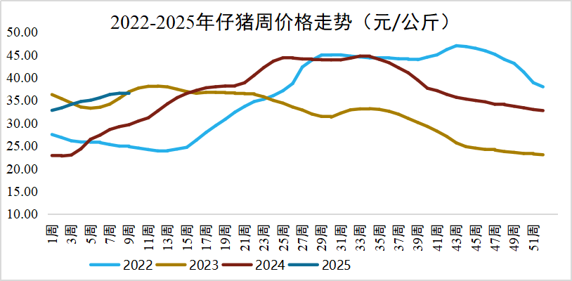仔猪价格由涨转跌:2025年2月第4周全国仔猪平均价格36.50元/公斤,环比下跌0.1%,同比上涨23.3%。新疆、天津、云南、河北、内蒙古等15个省份仔猪价格上涨,上海、浙江、山东、宁夏、广西等14个省份仔猪价格下跌。华中地区价格较高,为37.94元/公斤;西南地区价格较低,为35.31元/公斤。