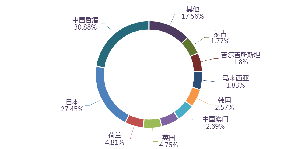市场方面,前12个月,我国肉类及制品出口额排名前十的国家/地区分别为中国香港、日本、荷兰、英国、俄罗斯、中国澳门、韩国、马来西亚、吉尔吉斯斯坦、蒙古,合计占我国该产品出口额的82.44%。