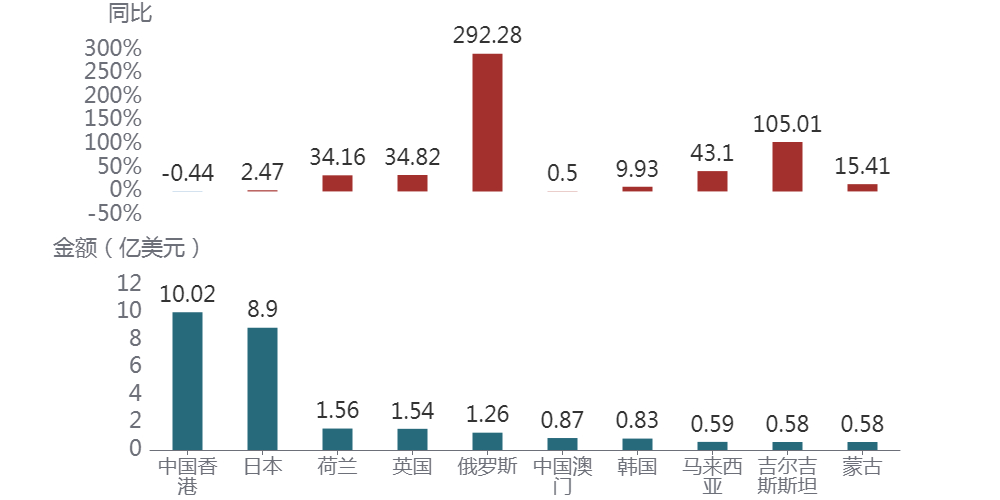 前12个月,中国香港是我国肉类及制品出口最主要的市场,出口额为10.02亿美元,同比下降0.44%。12月当月,出口额为1.11亿美元,同比增长3.54%。