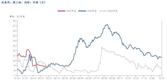 尽管气温回暖带动了居民外出就餐需求,餐饮消费有所回升,但整体需求回暖幅度有限。从终端市场来看,白条走货速度有所加快,但批发市场成交量并未出现显著增长,反映出需求端的疲软态势。
