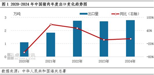 【导语】2024年中国猪肉出口增量,主要是非瘟后国内产能恢复,总体供应较充足。但由于我国为全球猪肉第一消费大国,产量基本内销,仅少部分出口至邻国及地区。当前中国猪肉仍保持着自给自足的消费特点,预计2025年猪肉出口量增幅或有限。