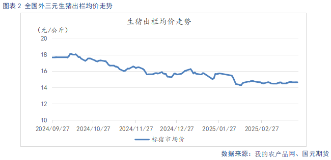 12月腌腊期间的集中出栏下,猪价持续走弱。进入1月初,大猪供应偏紧,养殖端压栏情绪升温,出栏节奏放缓,供应端的短暂收紧支撑猪价止跌反弹,猪价重回16元/公斤以上。不过1月出栏窗口期较短,压栏操作延续性不足,随着供应逐步增加,猪价再次走弱。盘面则由于前期下跌幅度较大,提前兑现了节后偏空预期,主力2503合约止跌企稳。但仍受供需宽松预期压制,在13000元/吨上下震荡整理。进入2月,春节后需求步入淡季,猪价快速走弱。由于大猪节前集中出栏,节后大猪供应偏紧,标肥价差在节后走扩,处于偏高水平,养殖端压栏、二育情绪升温,短暂支撑猪价止跌反弹。随着价格回暖,需求端承接力度不足,加之标肥价差收缩,养殖端逢高出栏意愿上升,二育情绪降温,供给端重回宽松局面,猪价再次走弱。2503、2505合约作为淡季合约,供强需弱格局下,整体承压。不过节前盘面已通过持续下行,提前交易了节后看空预期,继续下探的空间不足,盘面维持低位震荡行情。3月,养殖端压栏挺价,叠加零星二育入场截留,供给端压力减弱。需求端则处于季节性淡季,需求恢复缓慢,供需双弱下,现货走势在14.5元/公斤附近窄幅波动。主力2505合约则临近主力换月,在期现价差修复推动下反弹至13500元/吨附近,期现价差逐步缩窄。