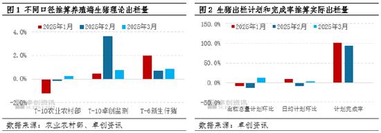但从卓创资讯监测生猪出栏计划与出栏率走势分析生猪实际出栏量,1-3月增幅并不及预期。据卓创资讯数据显示,1-2月生猪实际出栏量下滑9.65%、下滑13.27%,3月出栏计划增加12.74%,且日均出栏计划分别增加8.22%、减少12.77%和减少9.08%,实际出栏增幅并不及预期。