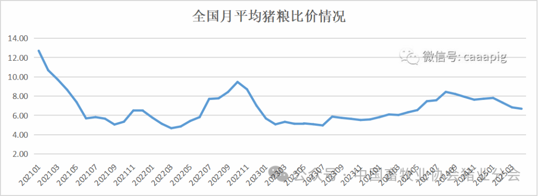 1、2025年4月份猪粮比价6.69,环比下降2.0%,同比上升5.9%。