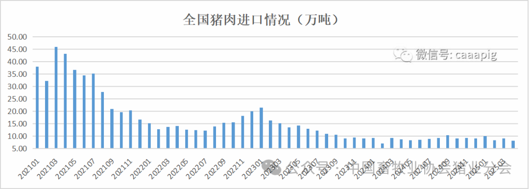 1、2025年4月进口猪肉8.07万吨,环比下降11.8%,同比下降7.1%。