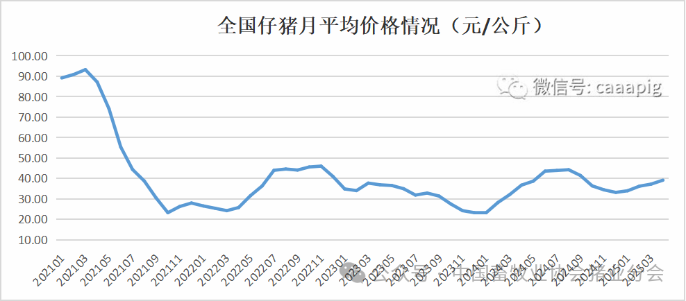 2、2025年4月份全国仔猪价格39.16 元/公斤,环比上涨5.2%,同比上涨6.6%。