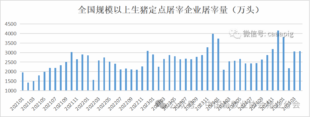 2、2025年4月份规模以上生猪定点屠宰企业屠宰量3077万头,环比增长0.5%,同比增长20.0%。