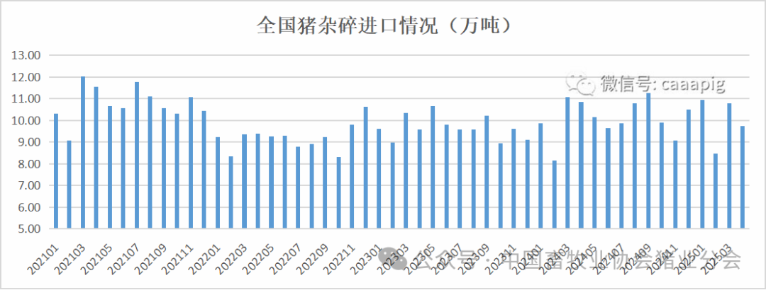 2、2025年4月进口猪杂碎9.75万吨,环比下降9.6%,同比下降10.2%。