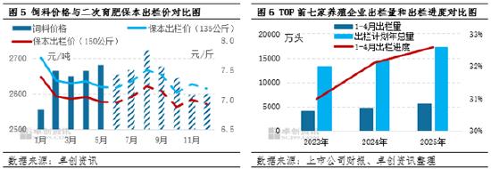 同时,随着养殖端规模化程度提升,集团公司出栏节奏会对市场交易心态起到风向标的带动作用。得益于1-5月外卖仔猪畅销,集团公司得以在持续压栏的情况下,年度的出栏进度完成较2023年和2024年略偏快。卓创资讯统计,截至4月,前7家集团公司年度出栏进度完成至32.60%,较2024年快0.50个百分点,较2023年快1.62个百分点。但四季度补栏的仔猪一方面面临冬季疫病风险,一方面也有对2026年丰产的担忧,补栏热度大概率不高。且年底养殖公司新一年出栏任务暂未公布,补栏积极性有限。仔猪滞销或推动养殖公司增加商品猪出栏量以完成年内任务。因此年底集团公司增量大概率会出现,或导致供应增幅超预期。