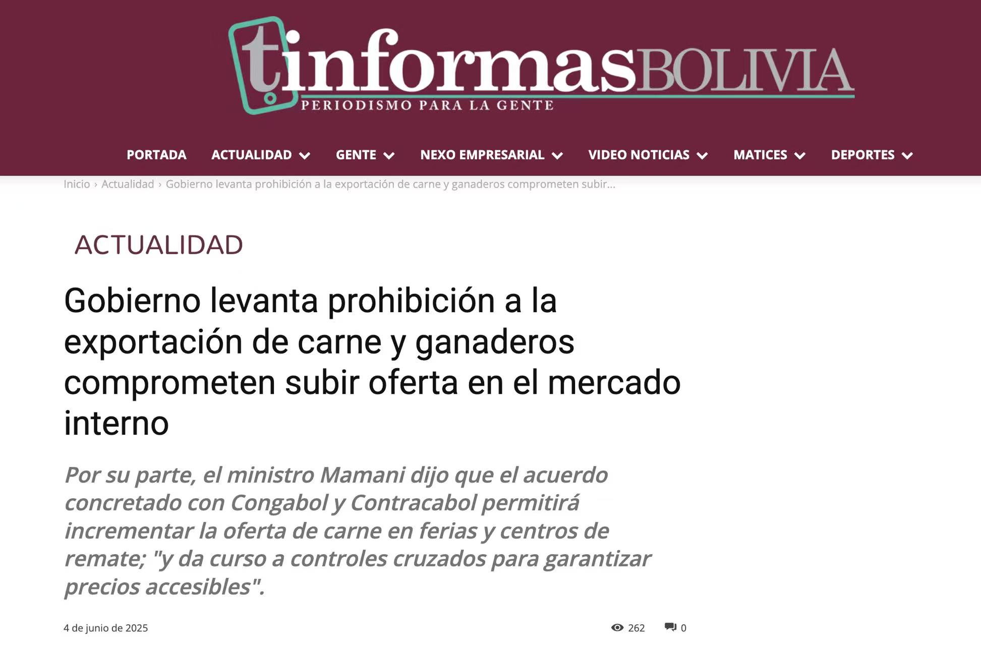 弗洛雷斯在发布会上表示,多方经对话达成协议,虽恢复出口,但生产者、企业须先保障国内供应、降低价格。他透露,2025 年玻利维亚牛肉供应 35.1 万吨,内需仅 29.5 万吨,盈余 5.5 万吨,然而出口配额仅 4.47 万吨。如此严控出口,意在优先稳定国内市场,不过,预计受控出口仍能带来 1 亿美元收益。