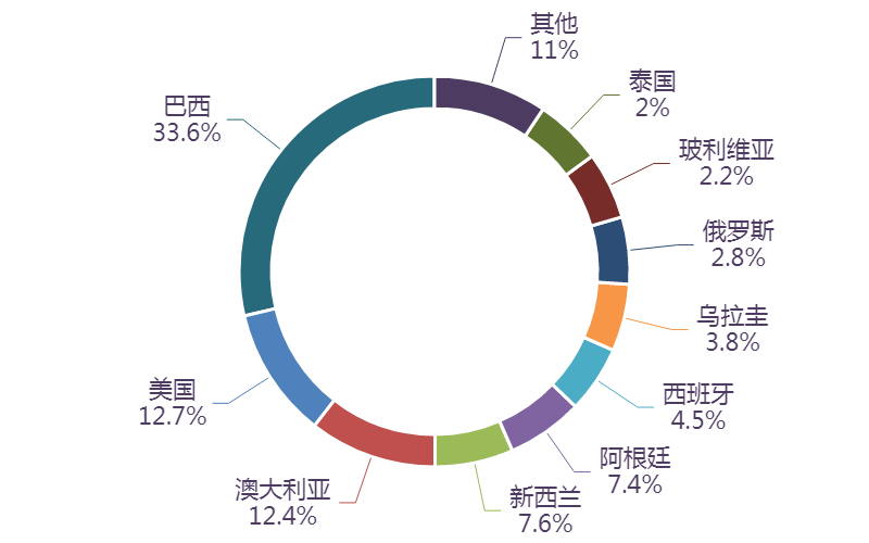 市场方面,前4个月,我国肉类及制品进口额排名前十的国家/地区分别为巴西、美国、澳大利亚、新西兰、阿根廷、西班牙、乌拉圭、俄罗斯、玻利维亚、泰国,合计占我国该产品进口额的89%。