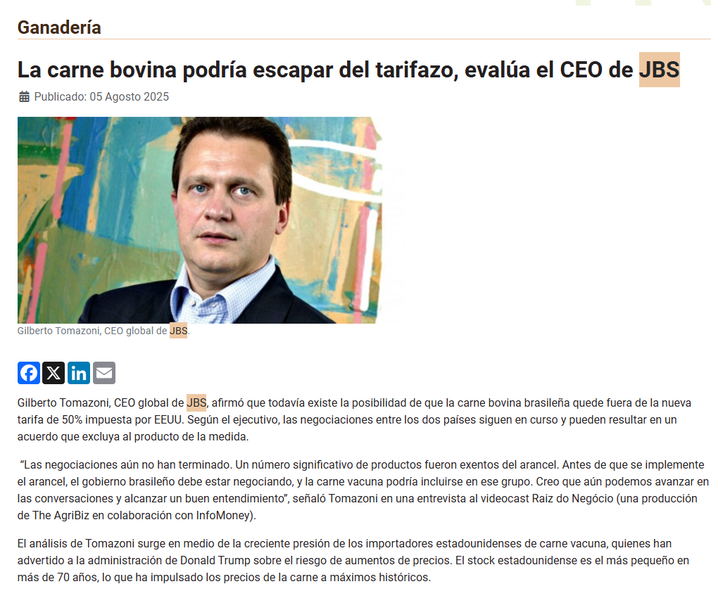 普悦 ·资讯 | 美50%牛肉关税现转机?JBS CEO放话:巴西牛肉或可豁免!