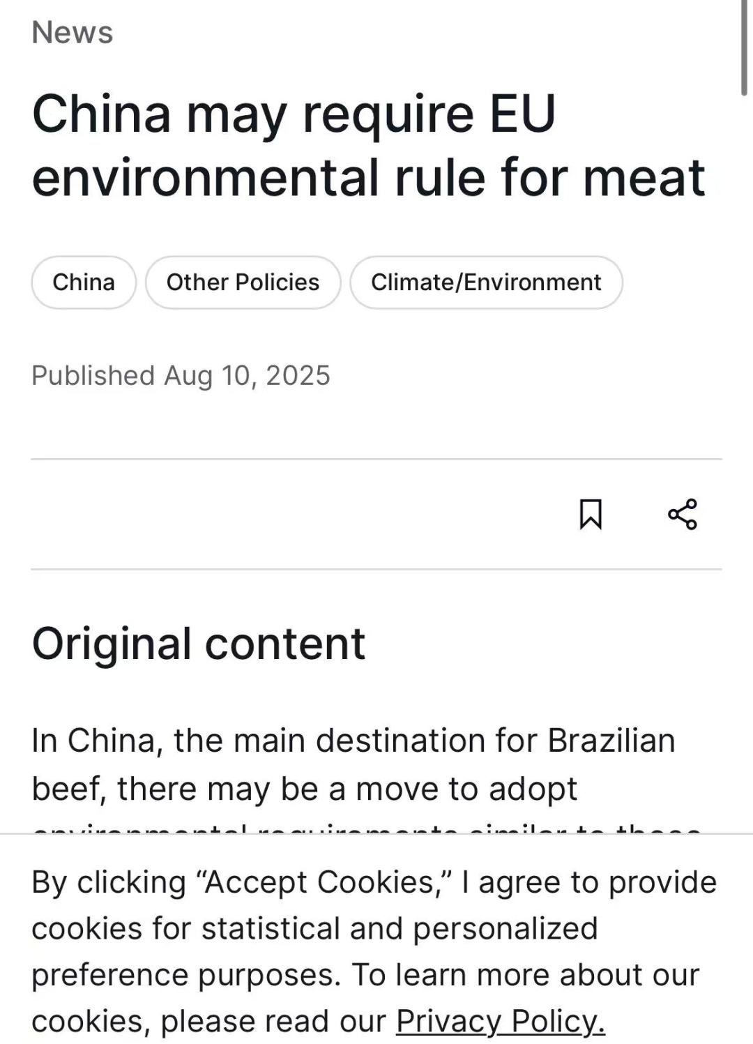 普悦 ·资讯 | 中国拟推欧盟式环保新规,巴西牛肉出口面临绿色转型挑战
