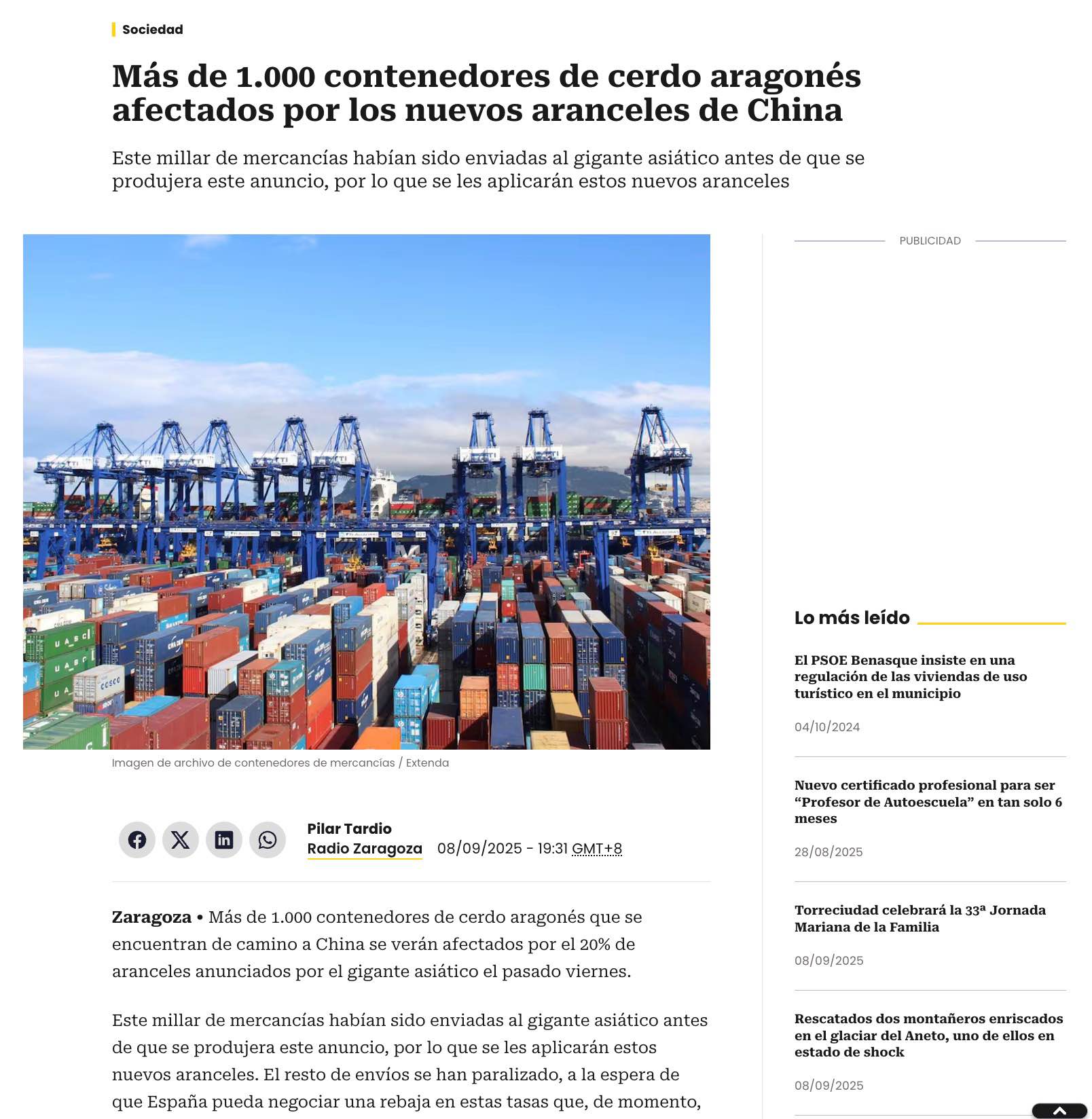 超过1000个装载西班牙阿拉贡猪肉的集装箱正在运往中国途中,将受中国近期对欧盟实施的临时反倾销关税影响。这批在措施公布前发出的货物需缴纳最高20%的关税,而西班牙其余对华猪肉出口目前已全面暂停。
