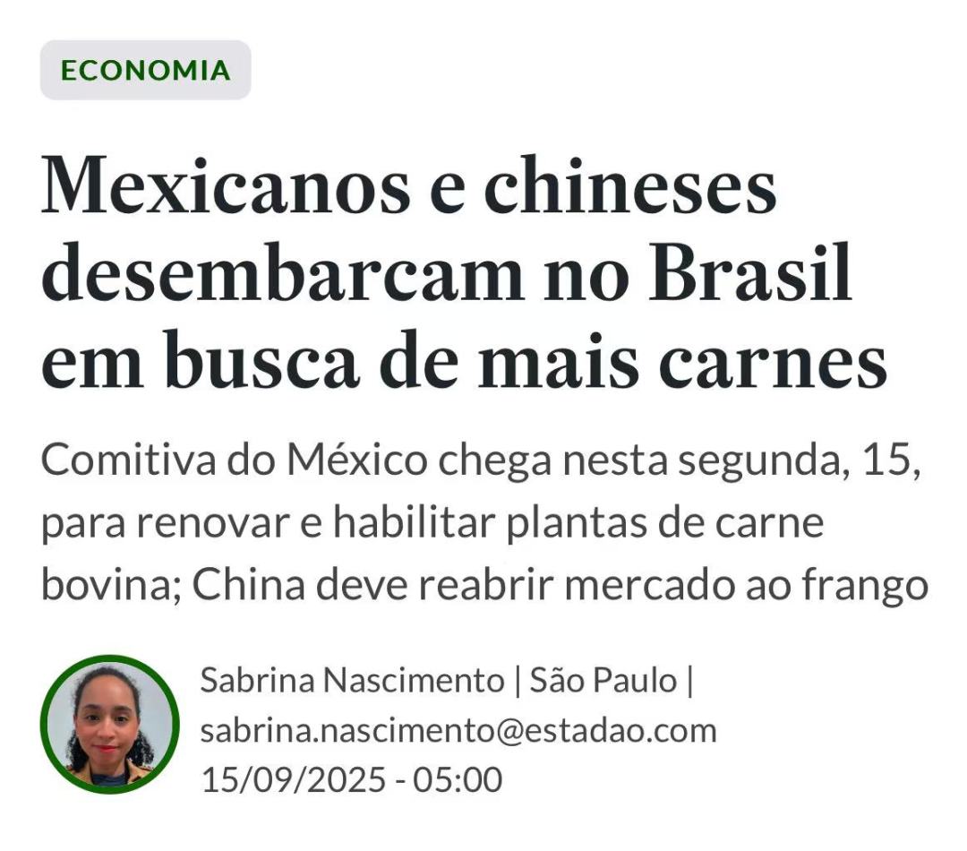 本周,巴西同时迎来两个对农牧业贸易具有战略意义的国际代表团。墨西哥代表团已于9月15日抵达,重点对巴西牛肉出口企业开展审计与认证工作;中国代表团则计划于9月22日到访,主要商谈恢复巴西禽肉对华出口事宜。