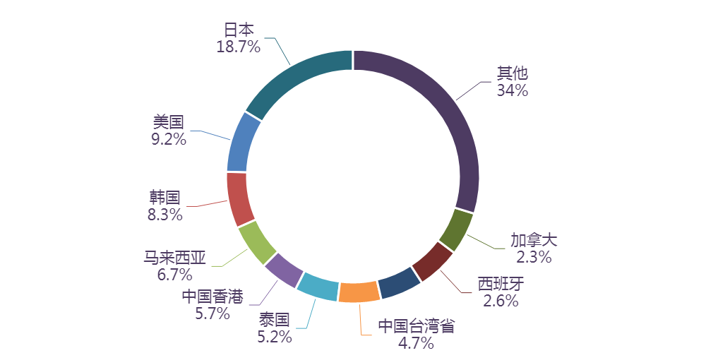 市场方面,前7个月,我国水海产品及制品出口额排名前十的国家/地区分别为日本、美国、韩国、马来西亚、中国香港、泰国、中国台湾省、墨西哥、西班牙、加拿大,合计占我国该产品出口额的66%。