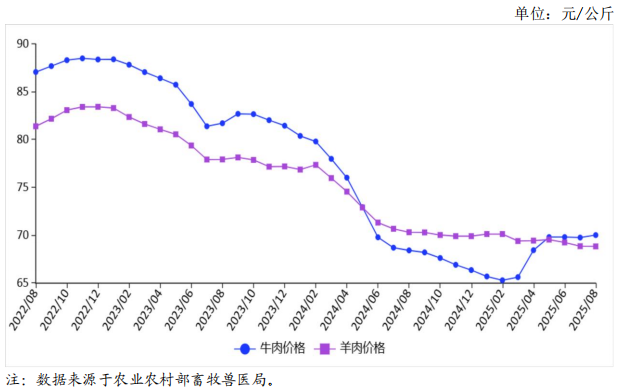 (三)预计近期牛羊肉价格有所上涨。从供给看,牛羊产能持续调整,存栏量继续减少,随着秋季到来,牧区开始进入传统出栏季,牛羊出栏量会有阶段性小幅增长,牛羊肉产量总体稳定。从需求看,天气逐渐凉爽,居民对温热滋补类食材需求增加,国庆中秋双节临近,餐饮行业备货量有所增加,家庭端受节日氛围带动,购买需求同步提升,牛羊肉消费需求迎来旺季。综合判断,预计近期我国牛羊肉价格将阶段性小幅上涨。