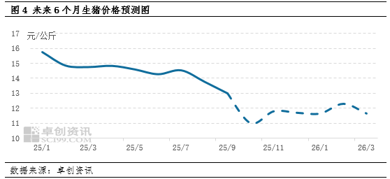 从生猪繁育、生长周期看,10个月前(2024年2月-2025年5月)的能繁母猪存栏量和6个月前(2025年3月-2025年9月)的新生仔猪量很大程度上决定了2025年10月-2026年3月的生猪理论出栏量。数据显示,2024年2月-2025年5月的国家能繁母猪存栏变化率在-0.66%与0.10%区间内震荡,整体呈减少趋势。但卓创资讯监测2024年2月-2025年5月196家中大型样本养殖企业能繁母猪存栏变化率为-0.02%至1.44%,主线增加;同时2025年3月-2025年8月国家新生仔猪变化率为-0.70%至1.90%,同样主线增加。结合不断提升的PSY与仔猪成活率推断,未来6个月生猪理论出栏量或多为增加趋势,利空猪价。