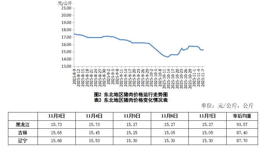一、东北地区猪肉价格环比小幅下跌,同比跌幅持平