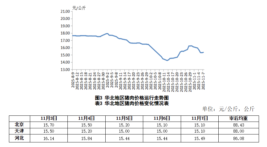 二、华北地区猪肉价格环比下跌,同比跌幅扩大