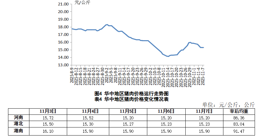 三、华中地区猪肉价格环比小幅下跌,同比跌幅扩大