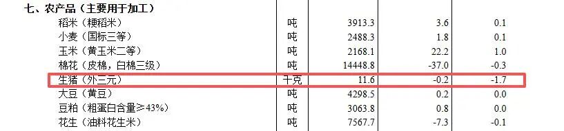 11月中旬生猪(外三元)价格环比降1.7%