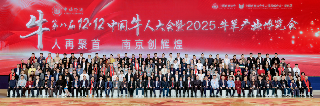 2025年12月12日,由中国肉类协会主办、中国肉类协会牛人俱乐部分会华东区承办的中福冷链—第八届12·12中国牛人大会在南京盛大开幕。本届大会汇聚了行业主管部门、专家学者、企业代表等超过一千五百名嘉宾,围绕政策风向、产业协同、科技创新、市场拓展及可持续发展等核心议题,共同探讨牛羊产业发展新路径。