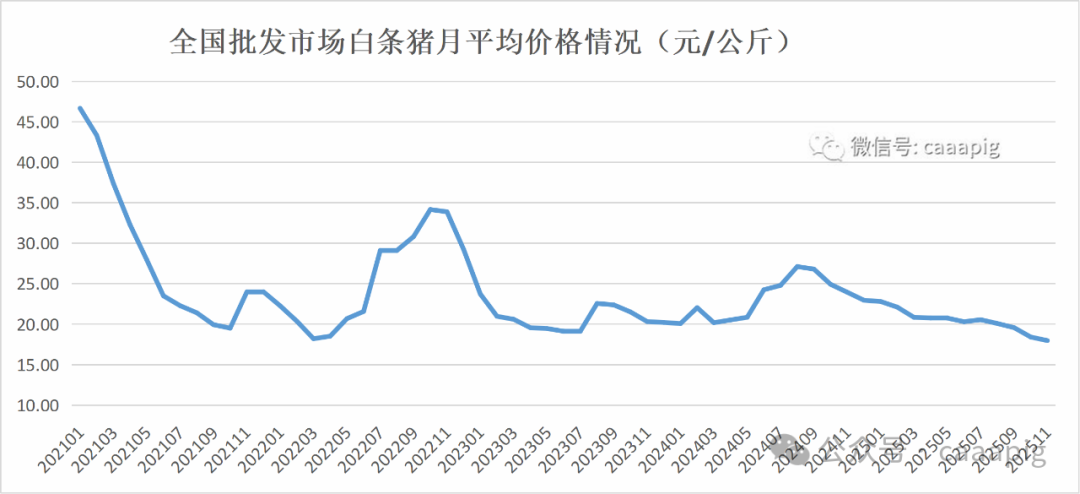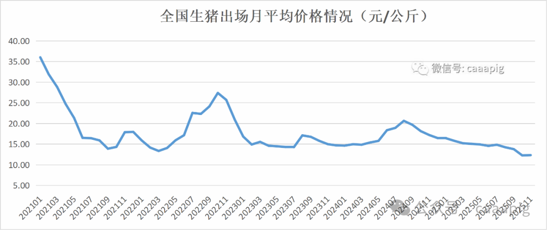 3、2025年11月份全国生猪出场价格12.33元/公斤,环比上涨0.5%,同比下跌28.3%。