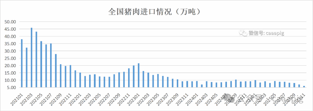 1、2025年11月进口猪肉6.08万吨,环比下降14.6%,同比下降34.3%。