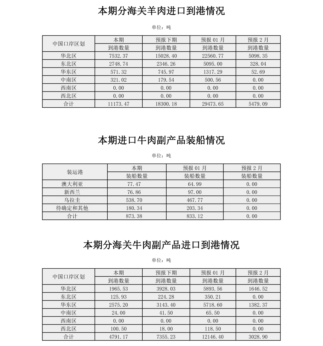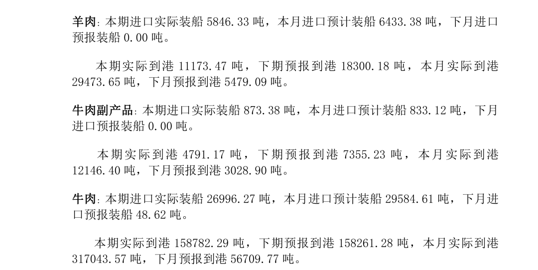 大宗农产品进口信息发布(肉类)