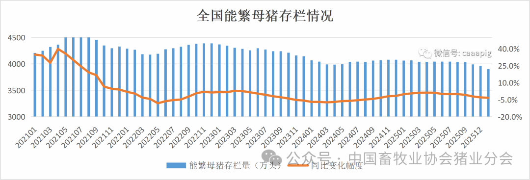 1、2026年1季度末能繁母猪存栏3904万头,环比下降1.5%,同比下降3.3%,相当于调控目标的100.1%。
