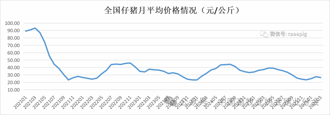 2、2026年3月份全国仔猪价格26.49元/公斤,环比下跌3.9%,同比下跌28.9%。