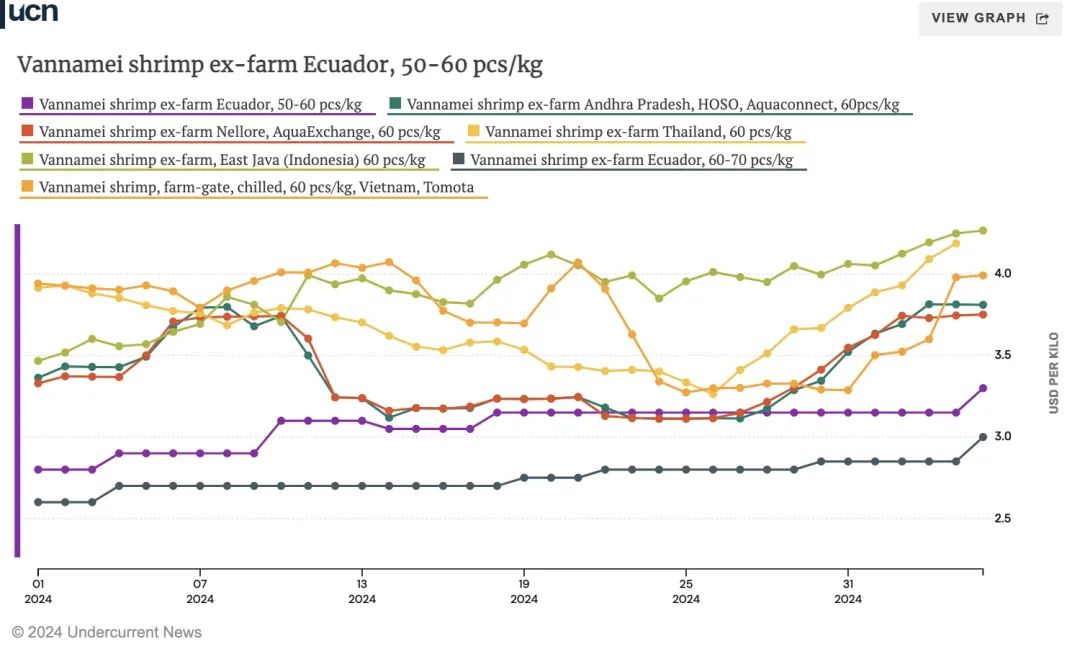 “我们看到印度、越南和泰国出现了供应短缺;然后,由于高利率和高昂的仓储成本,现在成品虾库存量非常低。”Coglitore补充。