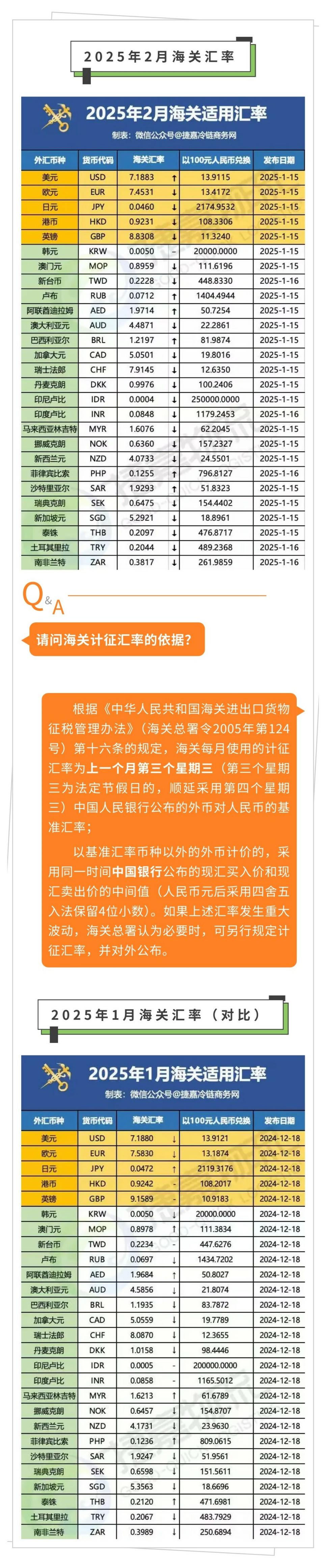 海关汇率 | 2025年2月
