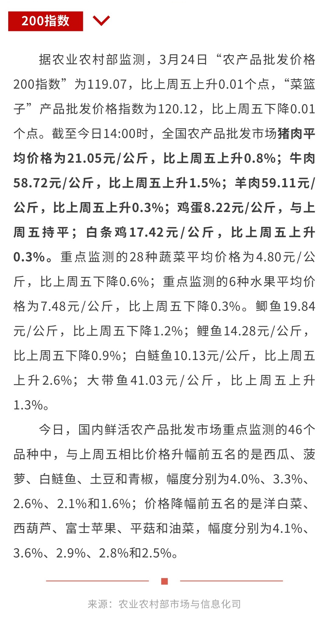 3月24日“农产品批发价格200指数”比上周五上升0.01个点