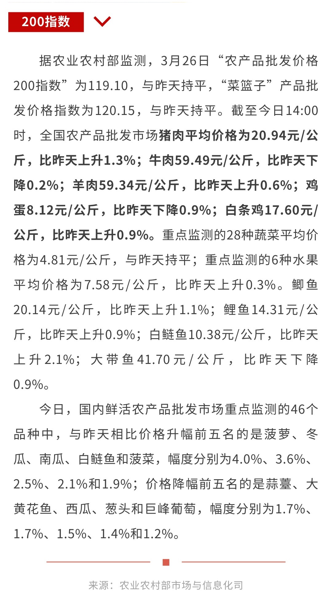3月25日“农产品批发价格200指数”比上昨天上升0.03个点