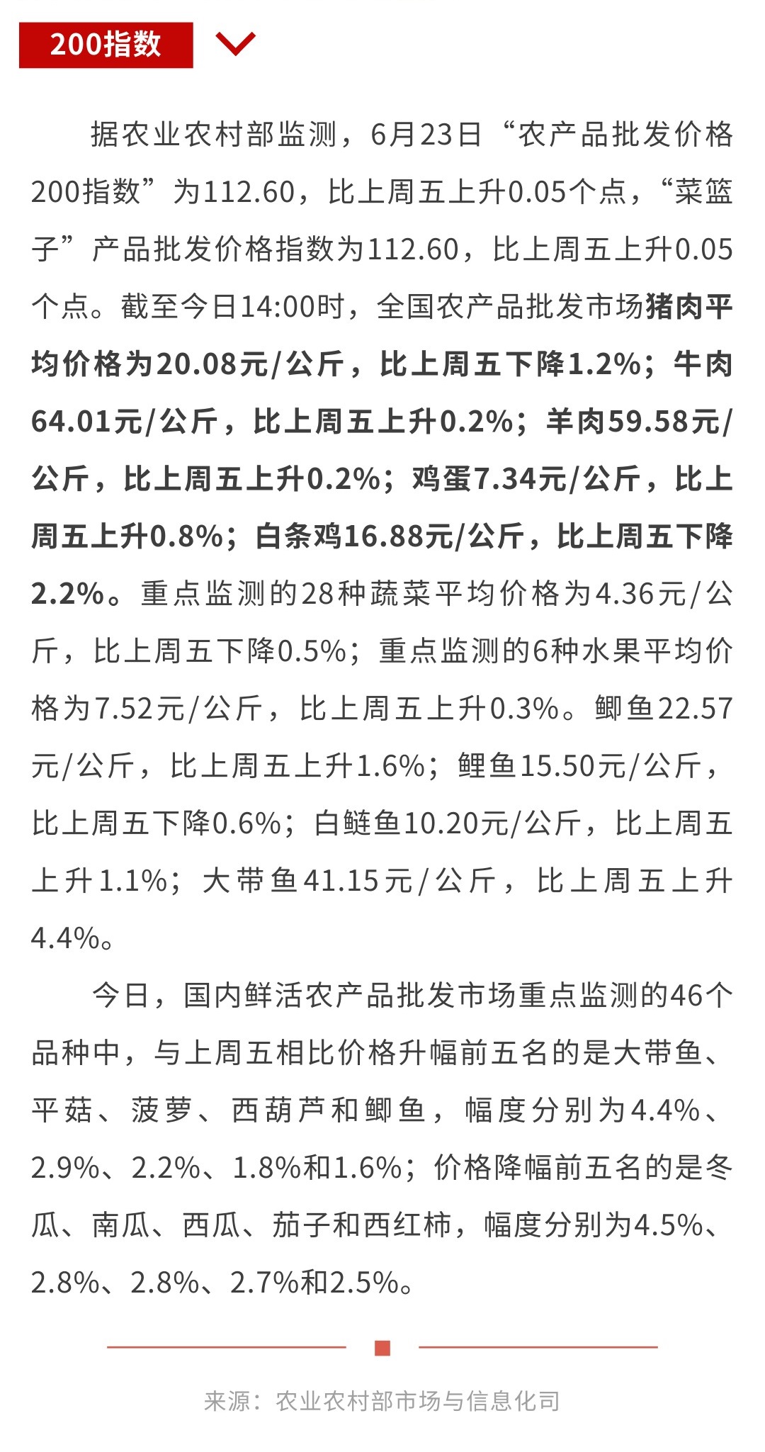 6月23日“农产品批发价格200指数”比上周五上升0.05个点