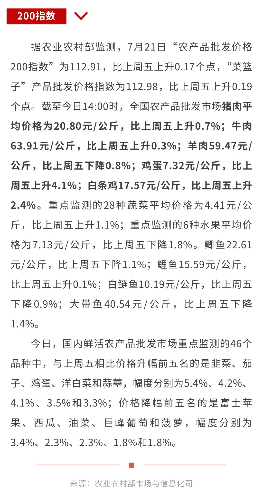 7月21日“农产品批发价格200指数”比上周五上升0.17个点