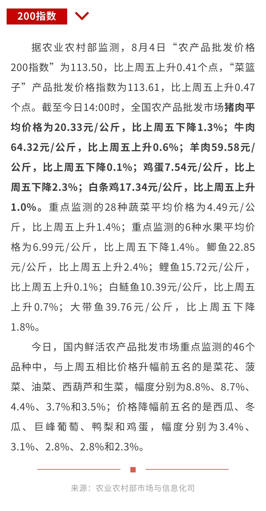 8月4日“农产品批发价格200指数”比上周五上升0.41个点