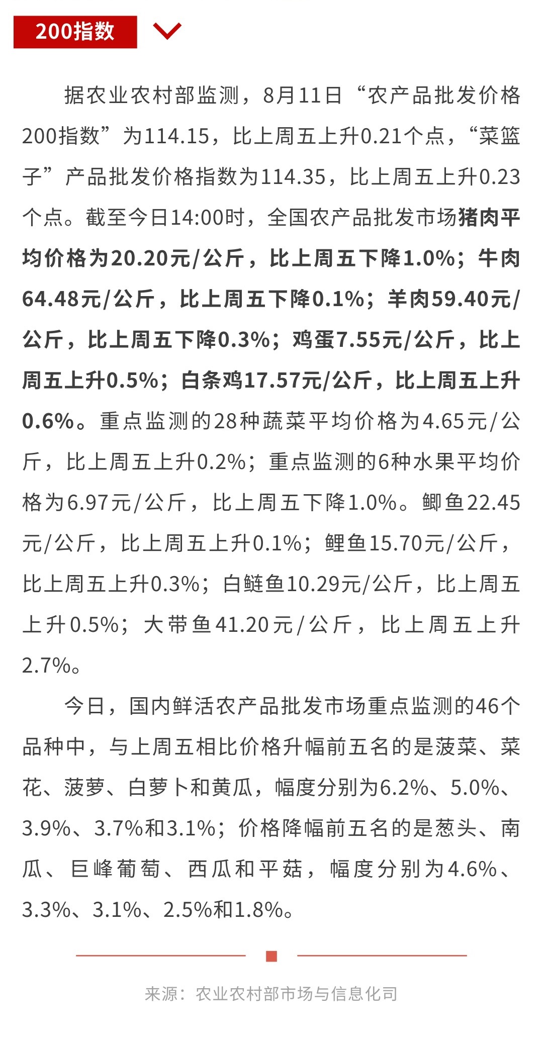 8月11日“农产品批发价格200指数”比上周五上升0.21个点