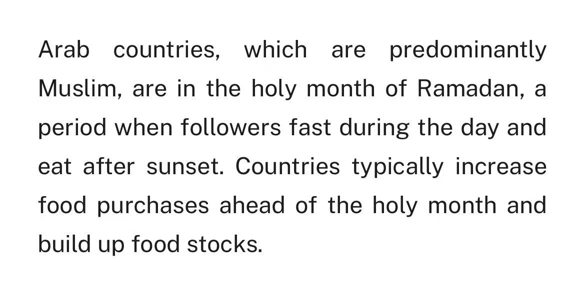中东每月进口巴西鸡肉10万—12万吨,占巴西总出口的25%—30%。沙特进口的鸡肉一半以上来自巴西,阿联酋这个比例冲到74%。这么大的量,企业不敢停、也不敢赌。
