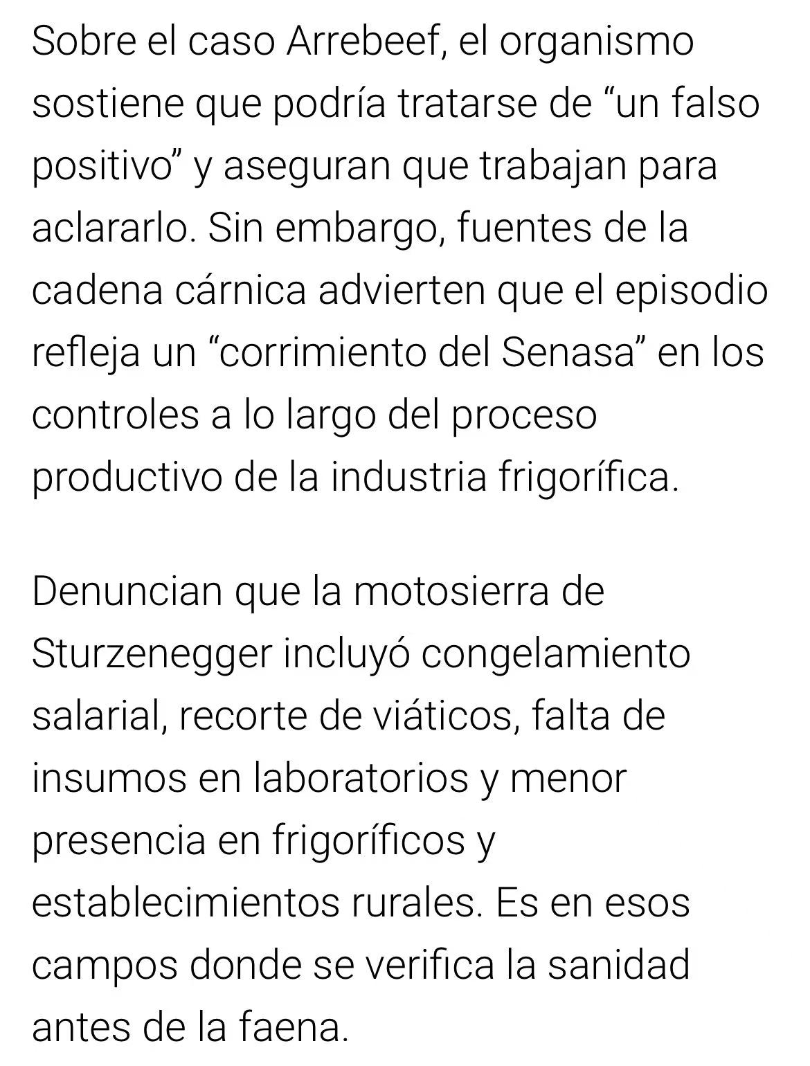 事件迅速发酵,并指向更深层次的结构性问题。据悉,因工资冻结、差旅费削减及实验室物资短缺,阿根廷国家农业食品质量卫生局(Senasa)已有超过500名兽医和农业工程人员离职,转而流向薪资高出数倍的私营屠宰企业。这直接削弱了其从养殖场到加工厂的全程监管能力。