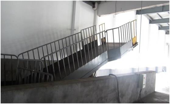 运输生猪的车辆只要选择合适的卸猪台停靠,车厢就会与卸猪台形成一个斜面。打开车厢挡板,猪就会像走T型台一样轻松踏上卸猪台,进入待宰棚。在卸车过程中,猪不会遭受痛苦。