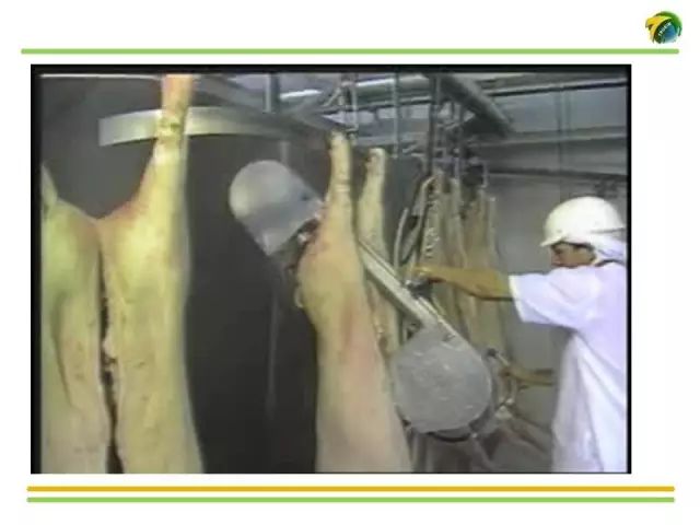 牲畜无紧张感,因此减少了猪体内糖原的分解,使牲畜屠宰后肉的最终PH 值低,保证肉的质量;由于牲畜在麻醉后失去知觉的状态深,便于刺杀和放血操作;二氧化碳加剧了牲畜的呼吸率,促进了牲畜的血液循环,使得牲畜刺杀后,放血比较彻底;生产能力完全可以满足流水线的需要;这种方法还可免由于电麻时造成的肌肉痉挛和导致PH值的大幅度变化;不会出现电麻时的血斑现象。
