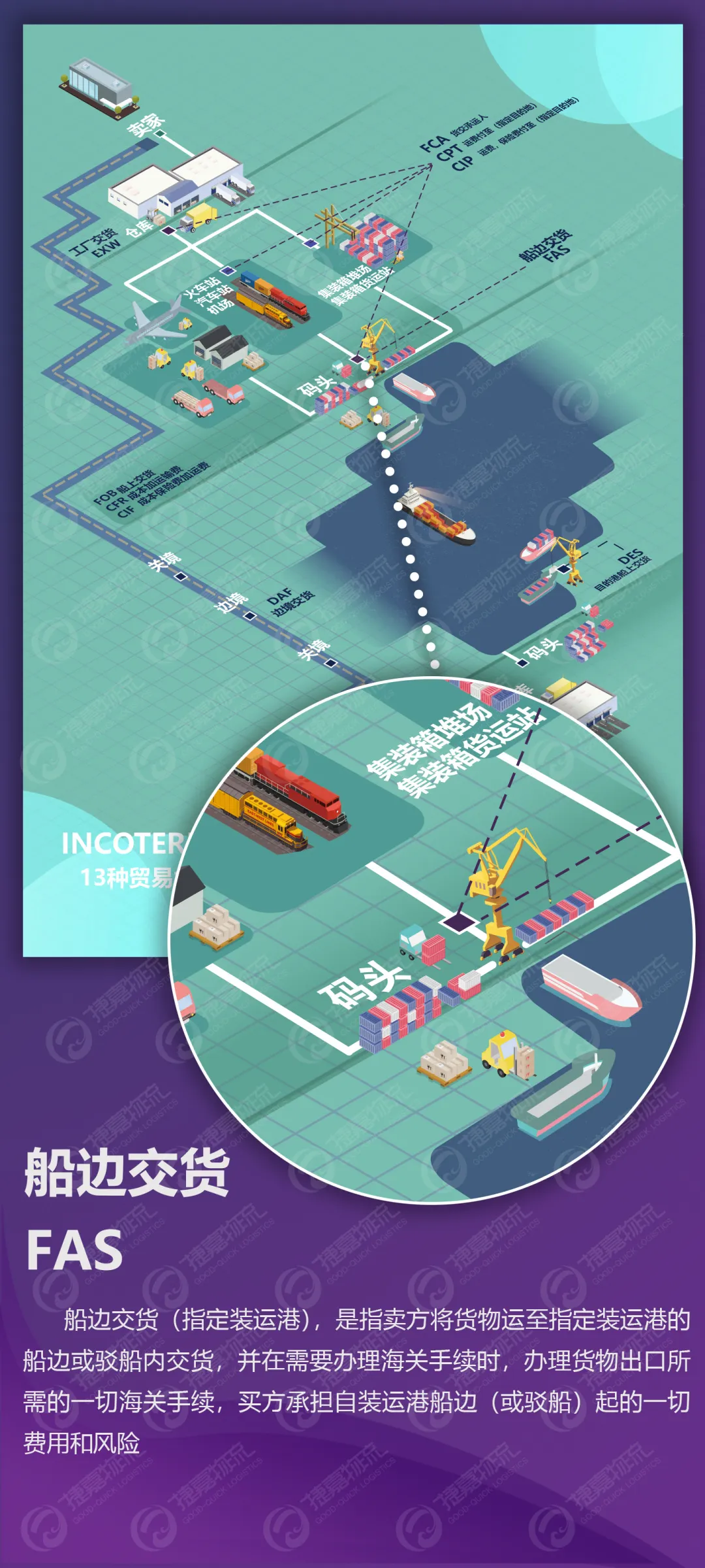按照《1941年美国对外贸易定义》的修订本解释,FAS是Free Along Side的缩写,即指交到运输工具的旁边。因此,在与北美国家的交易中使用FAS术语时,应在FAS后面加上"Vessel"字样,以明确表示"船边交货"。