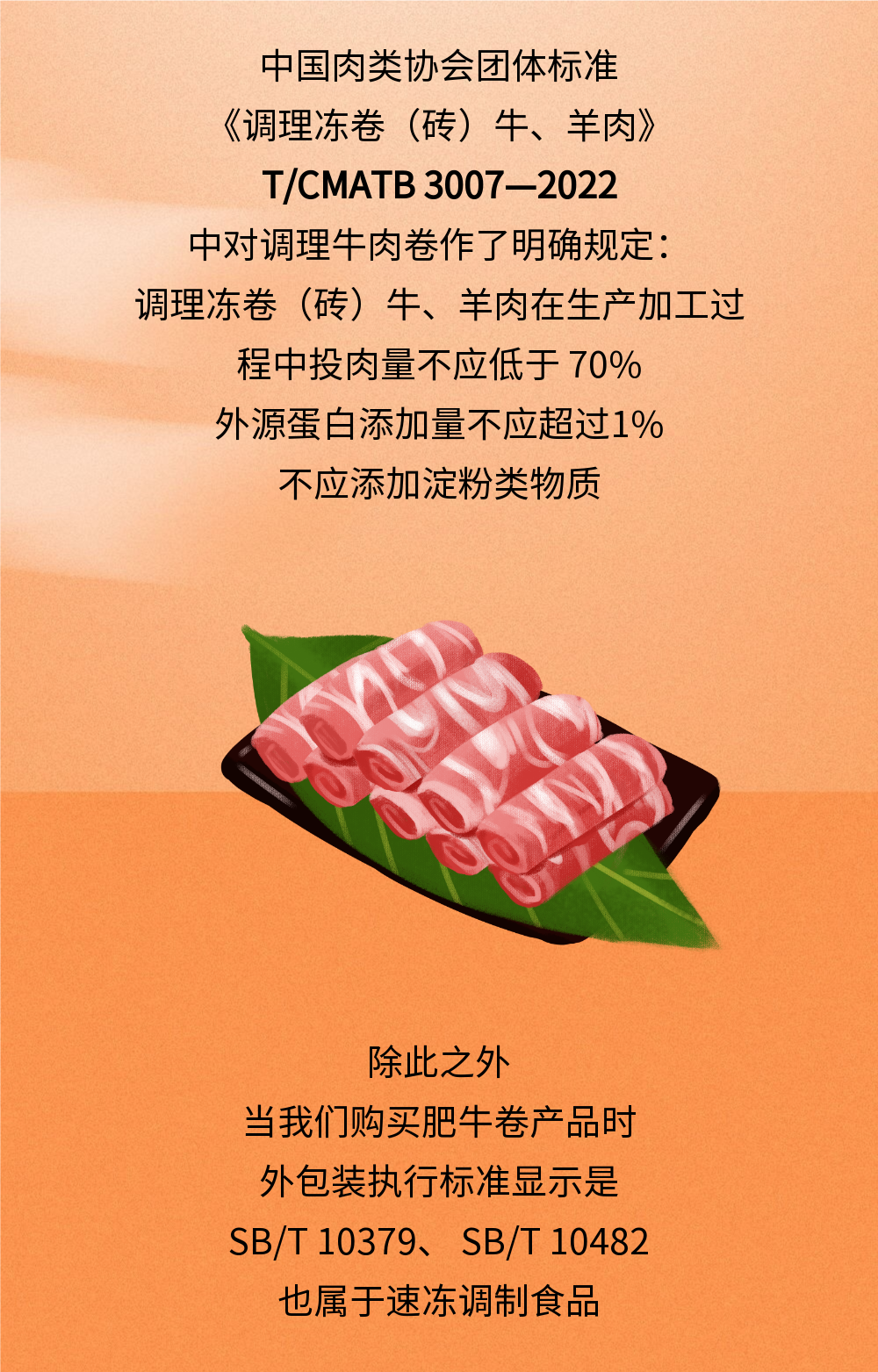 ①中国肉类协会团体标准《调理冻卷(砖)牛、羊肉》(标准号:T/CMATB 3007—2022)