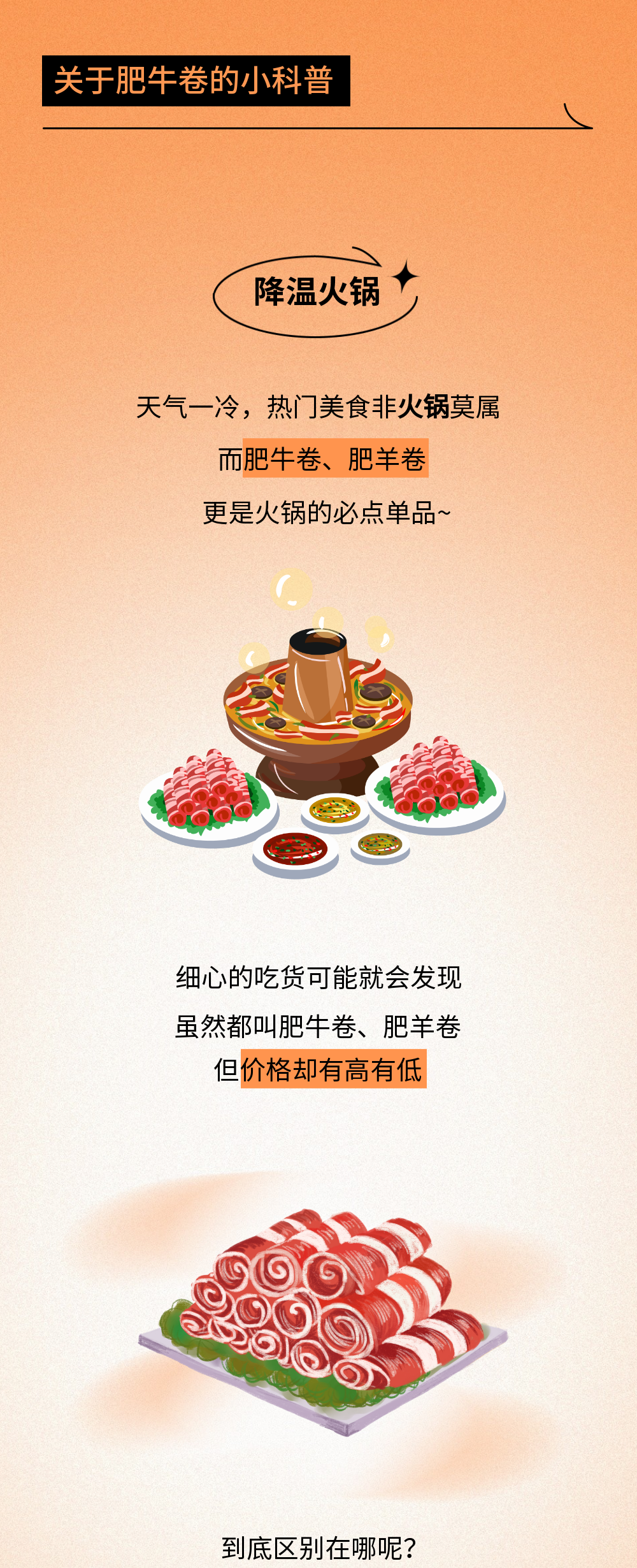 肥牛卷虽然有调理加工的,但味道可能更加入味,不一定非得选原切。毕竟价格相对不贵又好吃的肥牛卷能让我们涮的自由,吃的开怀,还不用担心钱包会空。